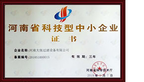 2020年9月9日——河南大張過濾設備有限公司榮獲“高新技術企業”證書